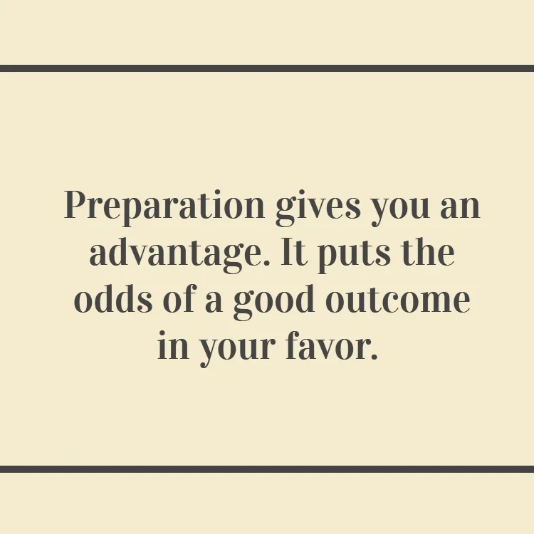 Preparation gives you an advantage. It puts the odds of a good outcome in your favor. Don’t ignore this step.